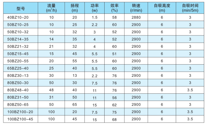 BZ系列自吸泵是属离心式自吸水泵,它具有结构紧凑、操作方便、运行平衡、维修方便、效率高、寿命长、并有较强的自吸能力等优点。工作前只需保留泵体内储有定量引液即可,大大改善了劳动条件。